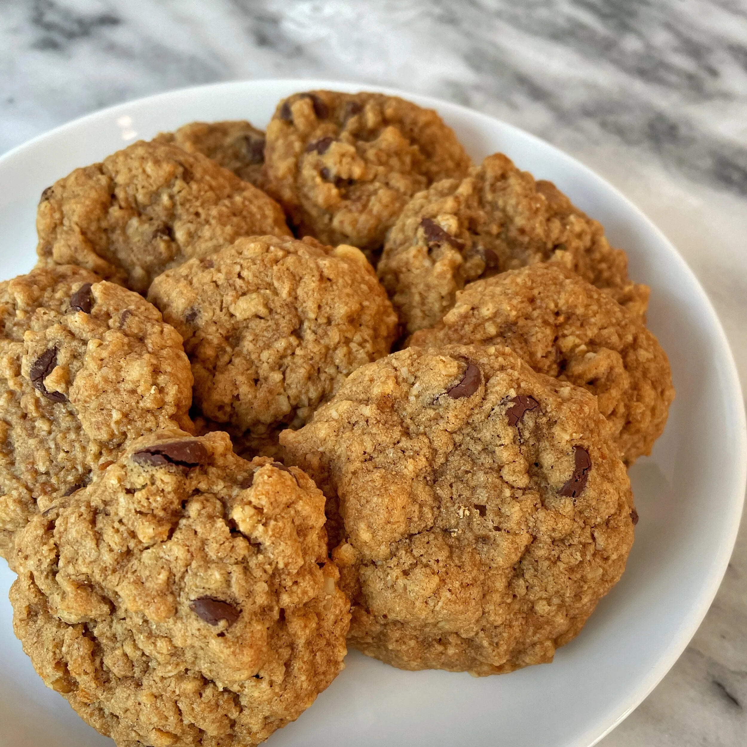 But GREAT for a breast feeding mama! A few weeks after having my first child I was sitting in the living room one evening breastfeeding and I heard someone at the door. I sent my husband to the door to see who it was and I heard her voice “I made Elizabeth some milk support cookies” I immediately invited her in. My neighbor was dropping off a care package for me - she has the warmest caring energy and happens to be an ER nurse. I remember feeling so grateful for that visit for many reasons but largely because it gave me hope that things will feel a little more normal just a few months away. I mean she had her 3-month-old son strapped to her chest and had enough bandwidth to bake her neighbor cookies! I was grateful for the support- we had a few cookies that night and then I tossed the bag in the freezer because after all I was struggling with an over supply of milk. I thought to myself those are delicious but I don’t need more milk ;) Well I learned quickly that milk supply changes fast. Fast forward 6 weeks- I was returning to work and my supply was plummeting. I got home from work one evening and my supply felt low. I drank a few glasses of water which should always be step one when you notice a dip in supply. Then I remembered the cookies in the freezer and quickly ate a few of them. A few hours later my milk supply had increased. I continued to use this tool anytime my supply was low over the next two years and it always seemed to help. They contain oats, flax and walnuts which are all nourishing foods for milk production. My body liked the combination of carbs and fat to cookies supplied for milk production. I think my system is particularly receptive because I typically have a very low sugar intake. I tried to recreate my neighbor’s cookies a few times and this is the recipe I landed on and it is pretty delicious! Now that I’m on my second breastfeeding journey I am once again enjoying these cookies.